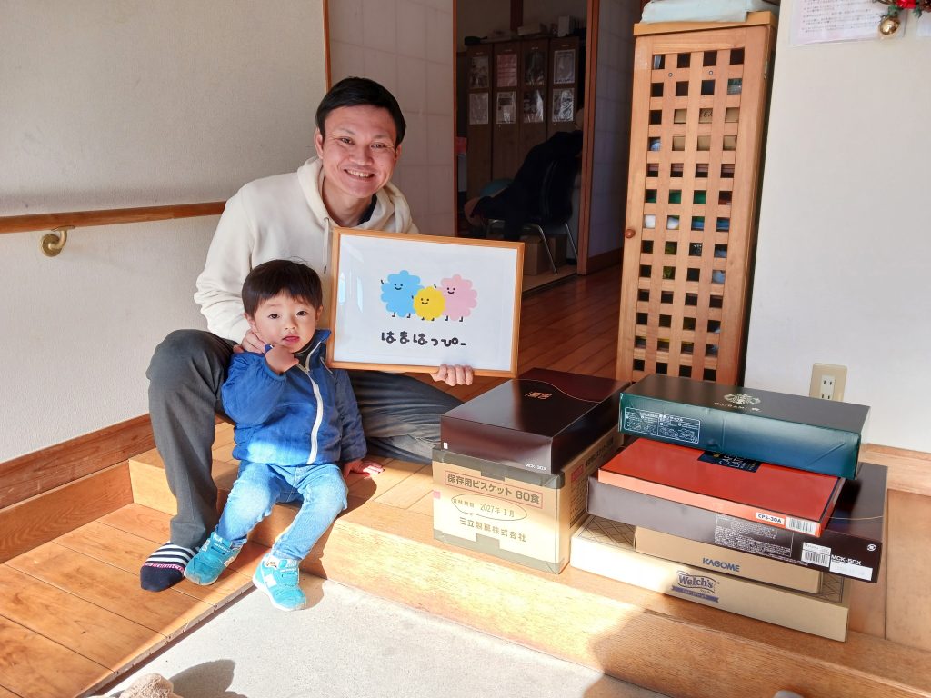 様へ、備蓄食料品及びお取引様から頂いた御歳暮の一部を寄贈いたしました。